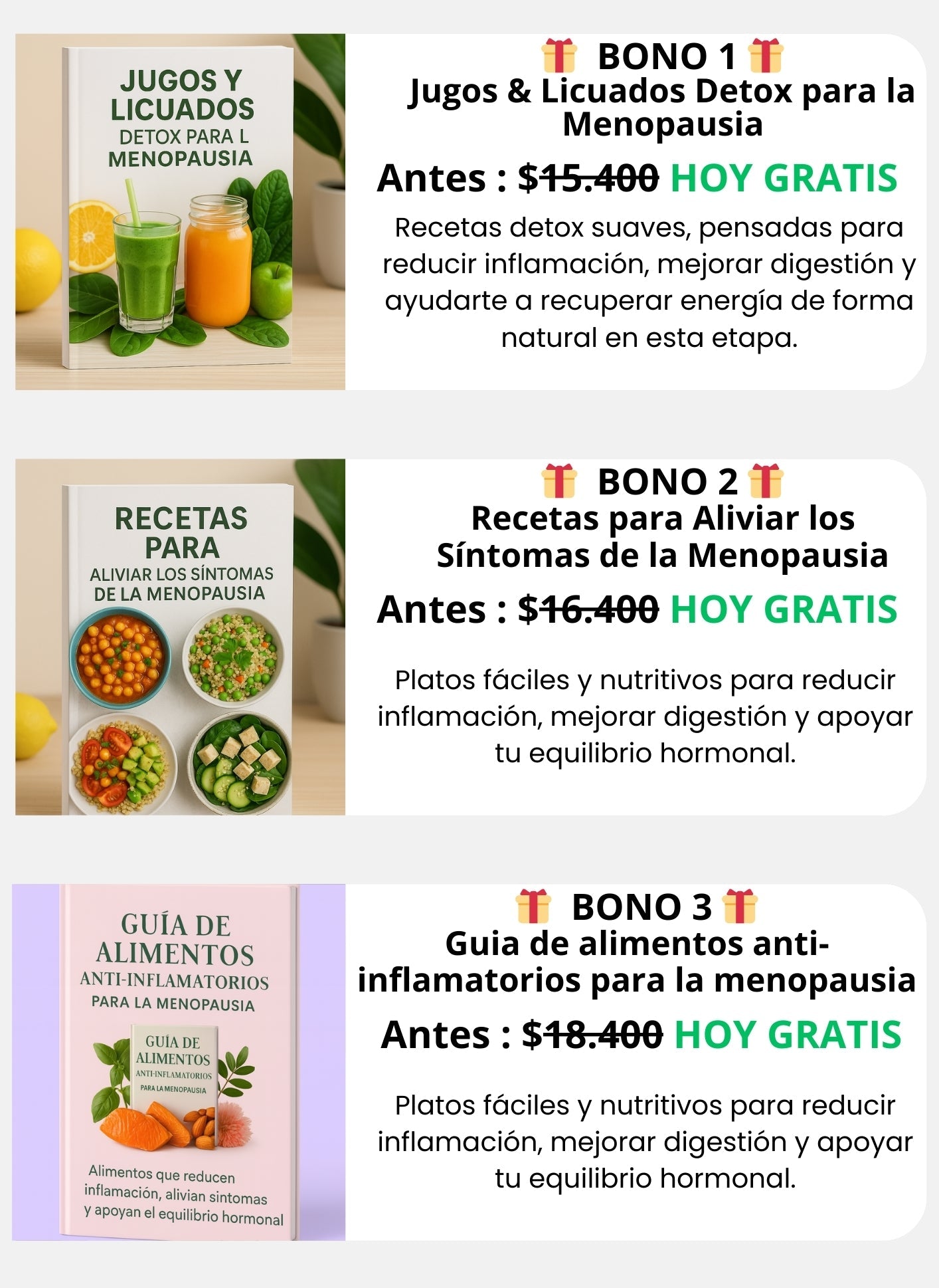 Es seguro porque no introduce nada artificial ni agresivo. Está basado en nutrición natural, hábitos respaldados por ciencia y suplementos suaves opcionales. No empuja al cuerpo: lo acompaña. La mayoría de las mujeres sienten alivio antes de la primera semana.